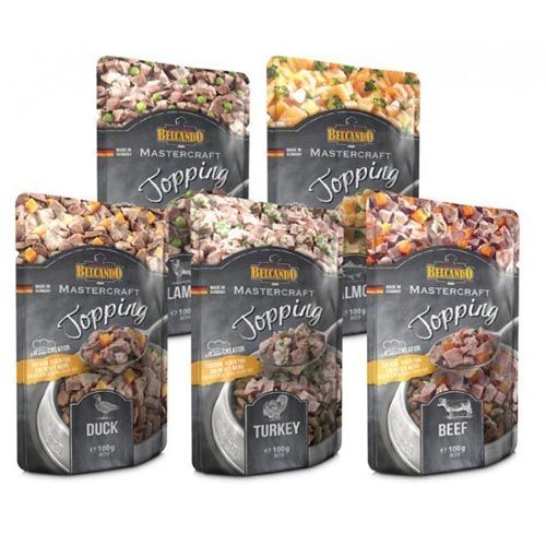 Belcando Mastercraft Topping (12 un) Alimento húmedo complementario en cubos de carne fresca para perros de todas las razas y tamaños.