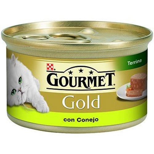 Il cibo umido Gourmet Gold Terrine con coniglio è un alimento per gatti a partire dai 12 mesi d‘età. Elaborato con ingredienti naturali di prima qualità. La sua esclusiva consistenza terrine, aroma e sapore soddisfaranno gli appetiti più esigenti e capricciosi.